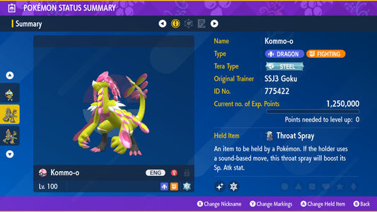 Pokemon Scarlet and Violet Kommo-o The Unrivaled 6IV-EV Trained