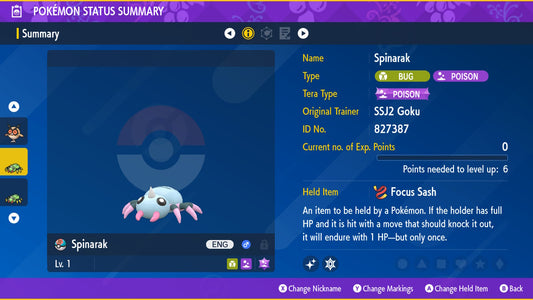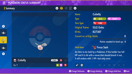 Pokemon Legends ZA Shiny Fletchling 6IV-EV Trained