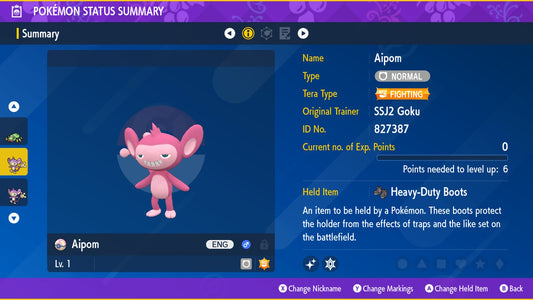 Pokemon Legends ZA Alpha Shiny Mankey 6IV-EV Trained