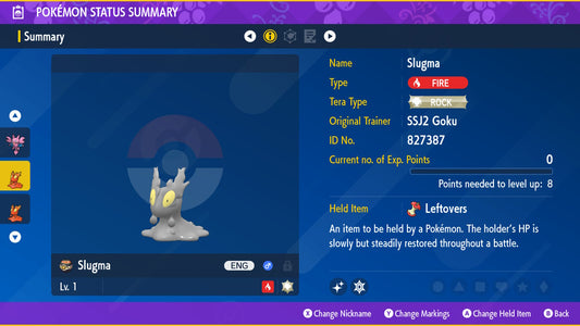Pokemon Legends ZA Alpha Shiny Glimmet 6IV-EV Trained