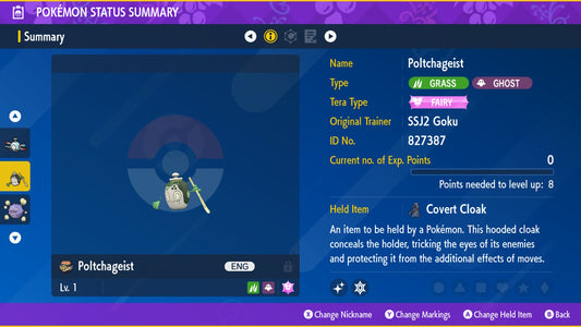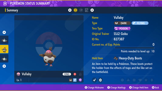 Pokemon Legends ZA Shiny Pidgey 6IV-EV Trained