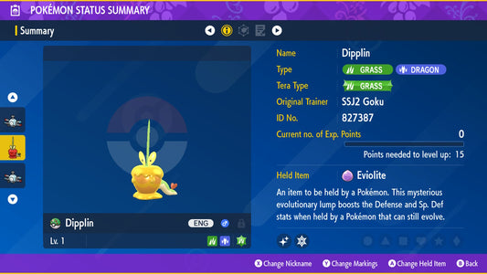 Pokemon Scarlet and Violet Marked Shiny Dipplin 6IV-EV Trained