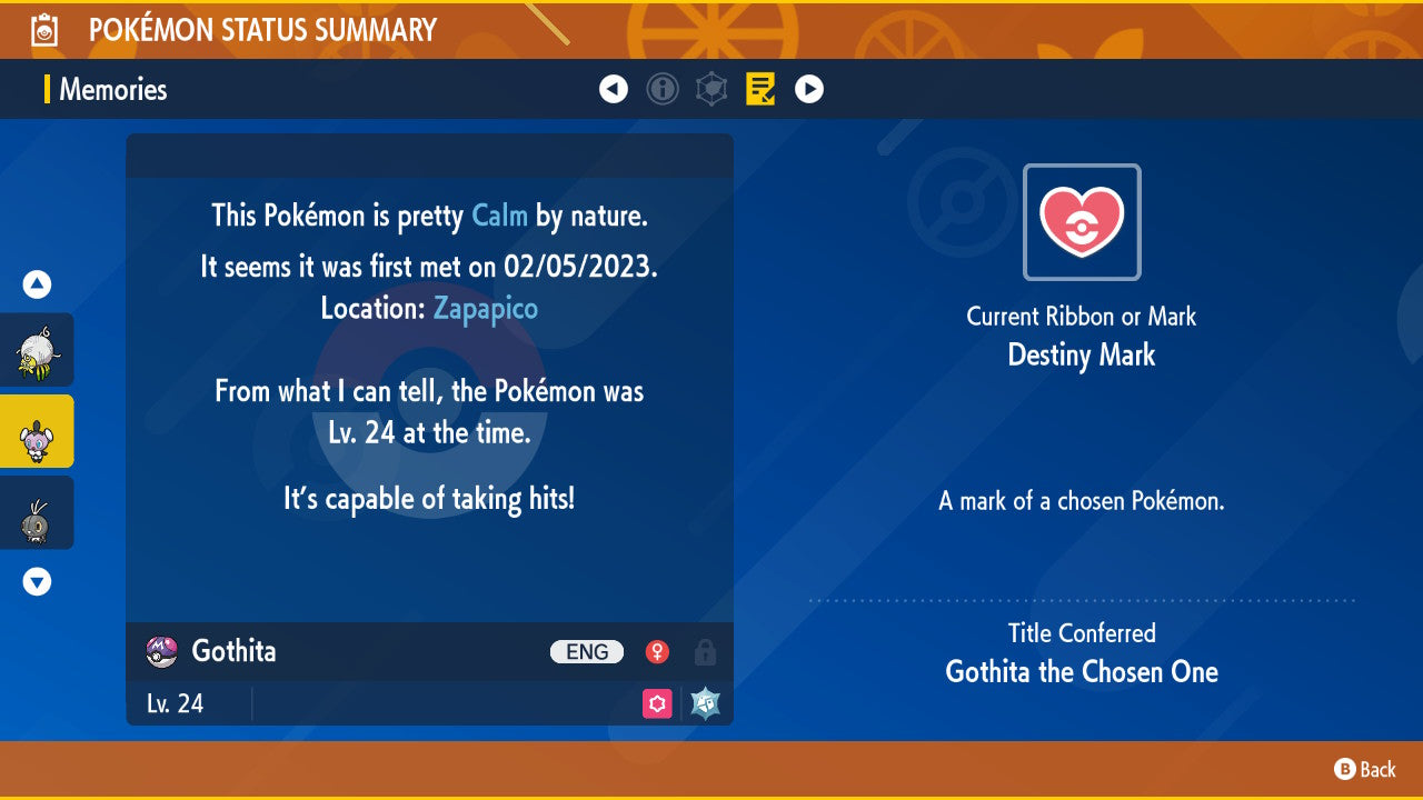 Pokemon Scarlet and Violet Marked Shiny Gothita 6IV-EV Trained