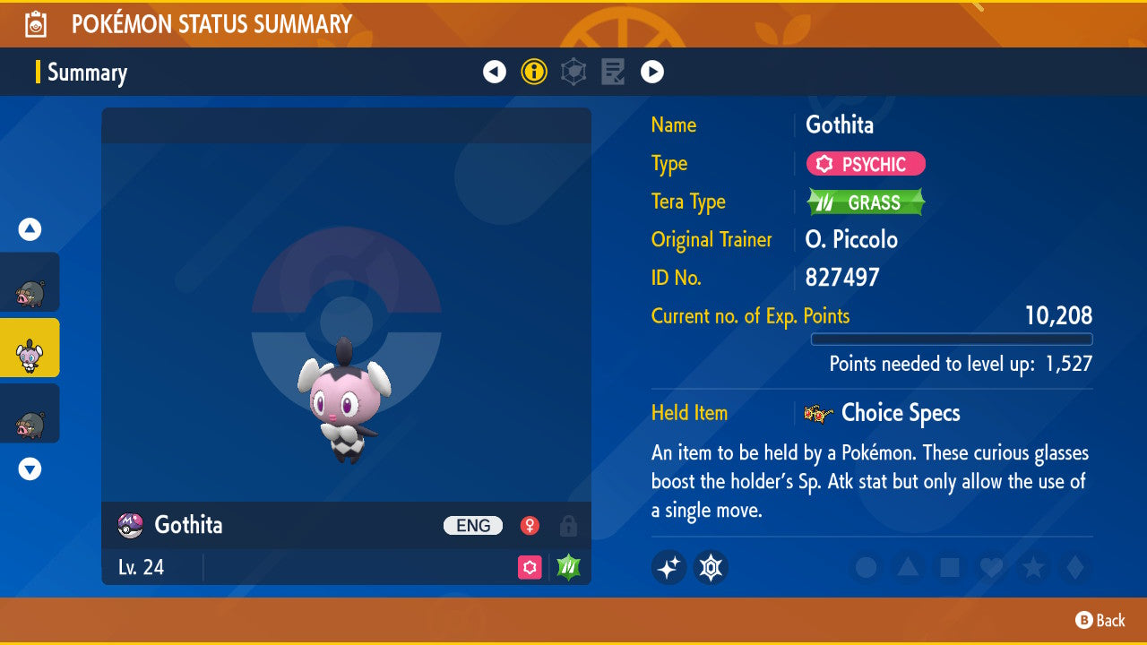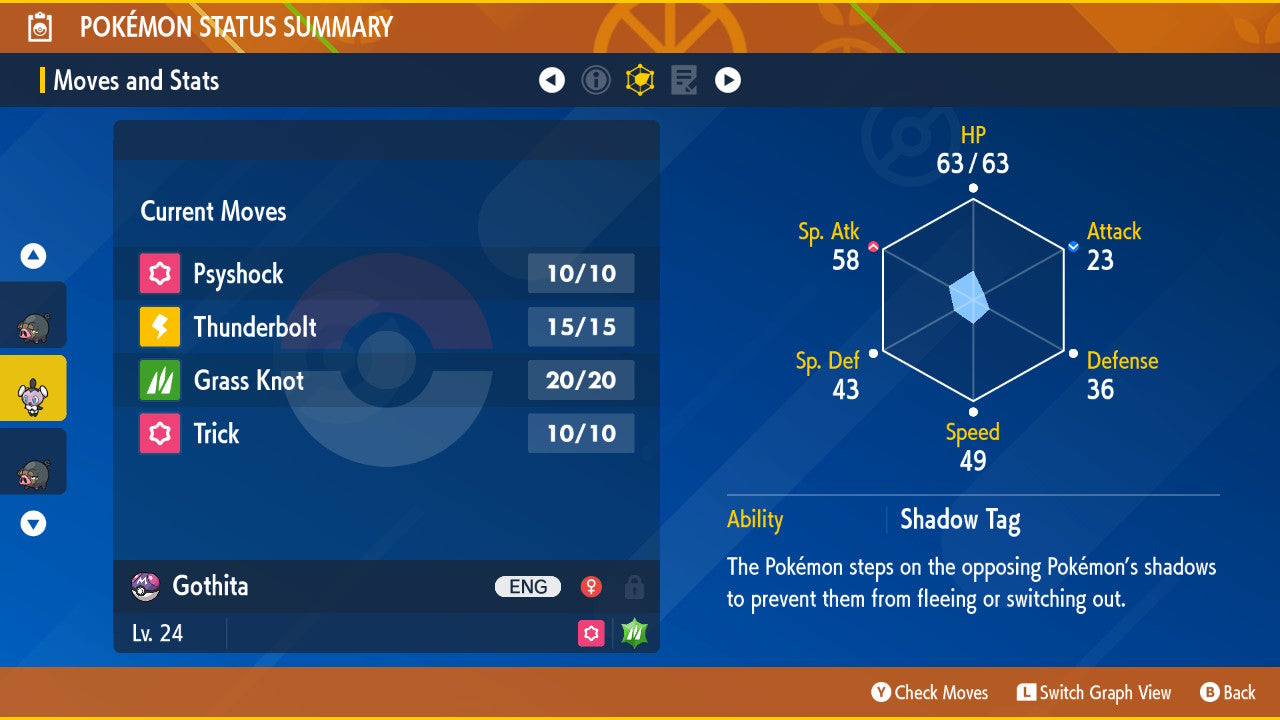 Shiny Gothita @ Choice Specs (Crafty Mark) LV. 24