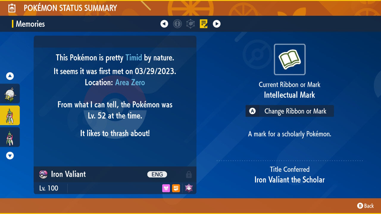 Shiny Iron Valiant @ Choice Specs (Intellectual Mark) LV. 100