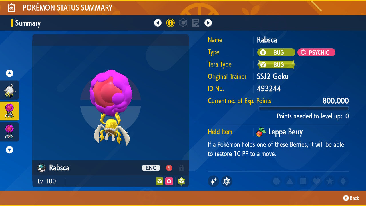 Rabsca @ Leppa Berry (Shiny) LV. 100