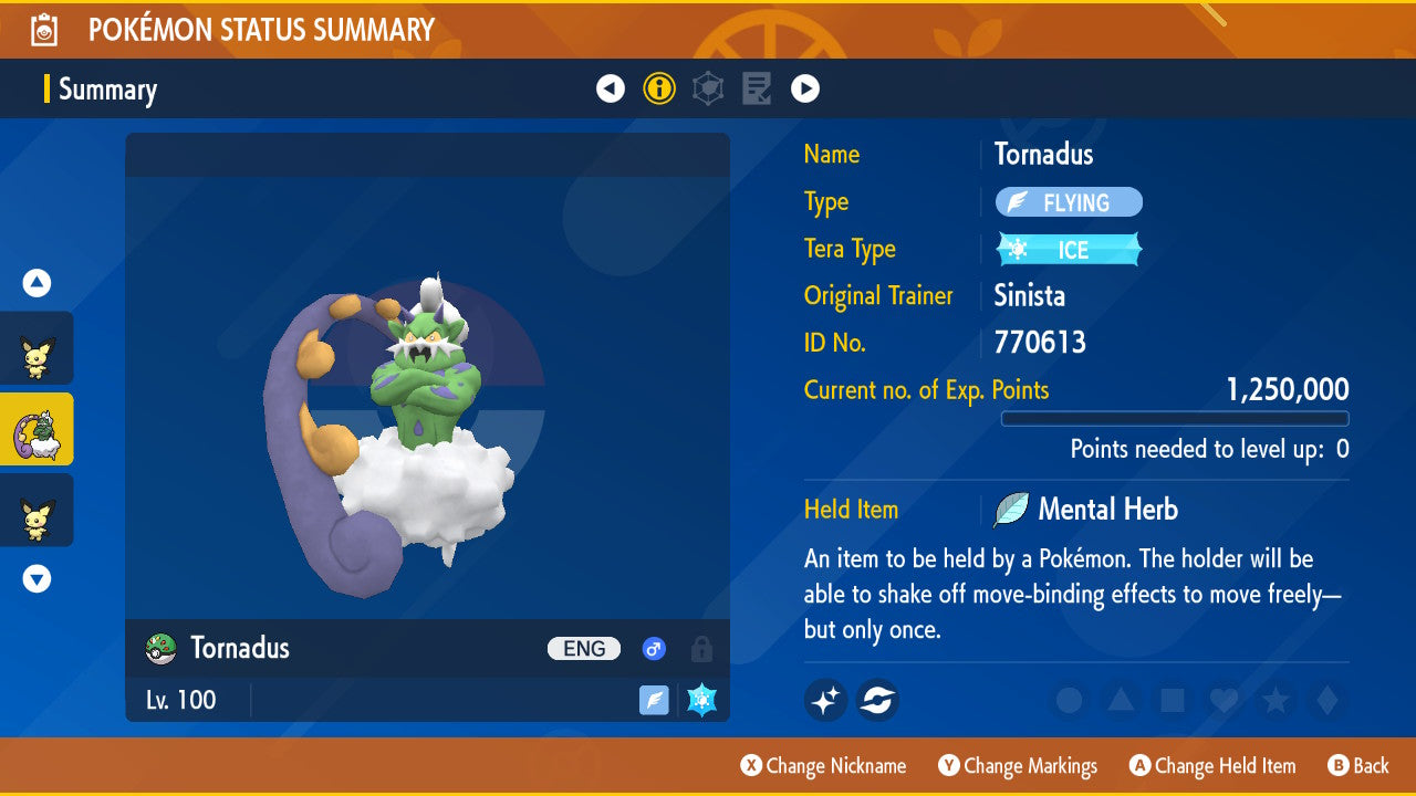Pokemon Scarlet and Violet Shiny Tornadus 6IV-EV Trained