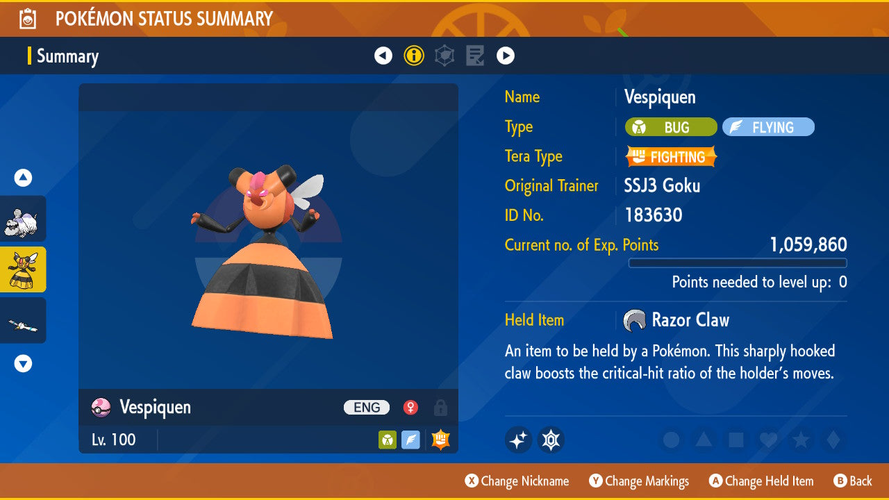 Vespiquen @ Razor Claw (Shiny) LV. 100