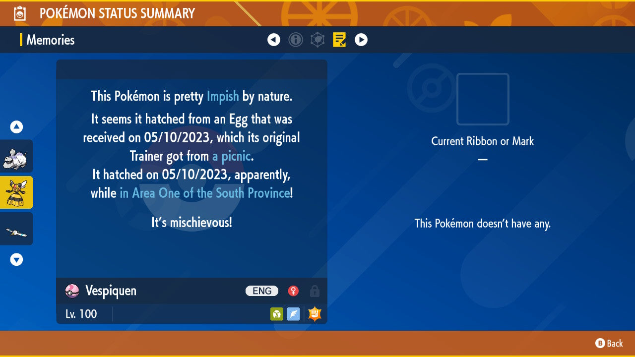 Pokemon Scarlet and Violet Shiny Vespiquen 6IV-EV Trained