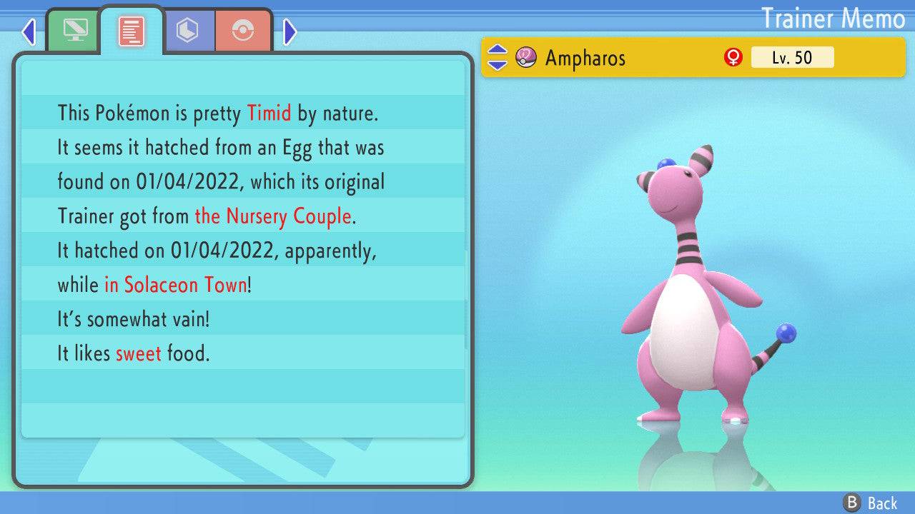 Pokemon Brilliant Diamond and Shining Pearl Ampharos 6IV-EV Trained