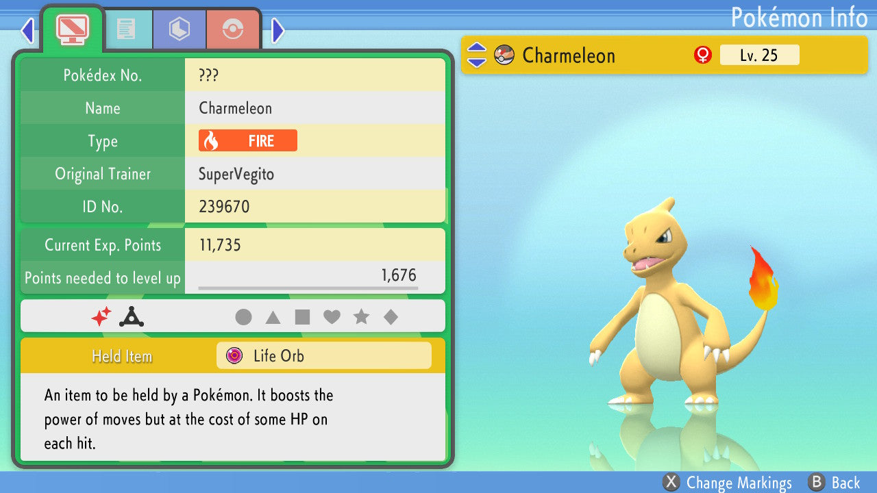 Pokemon Brilliant Diamond and Shining Pearl Charmeleon 6IV-EV Trained