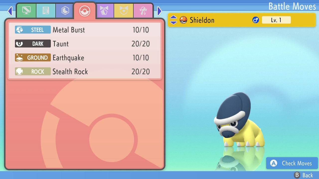 Pokemon Brilliant Diamond and Shining Pearl Shieldon 6IV-EV Trained