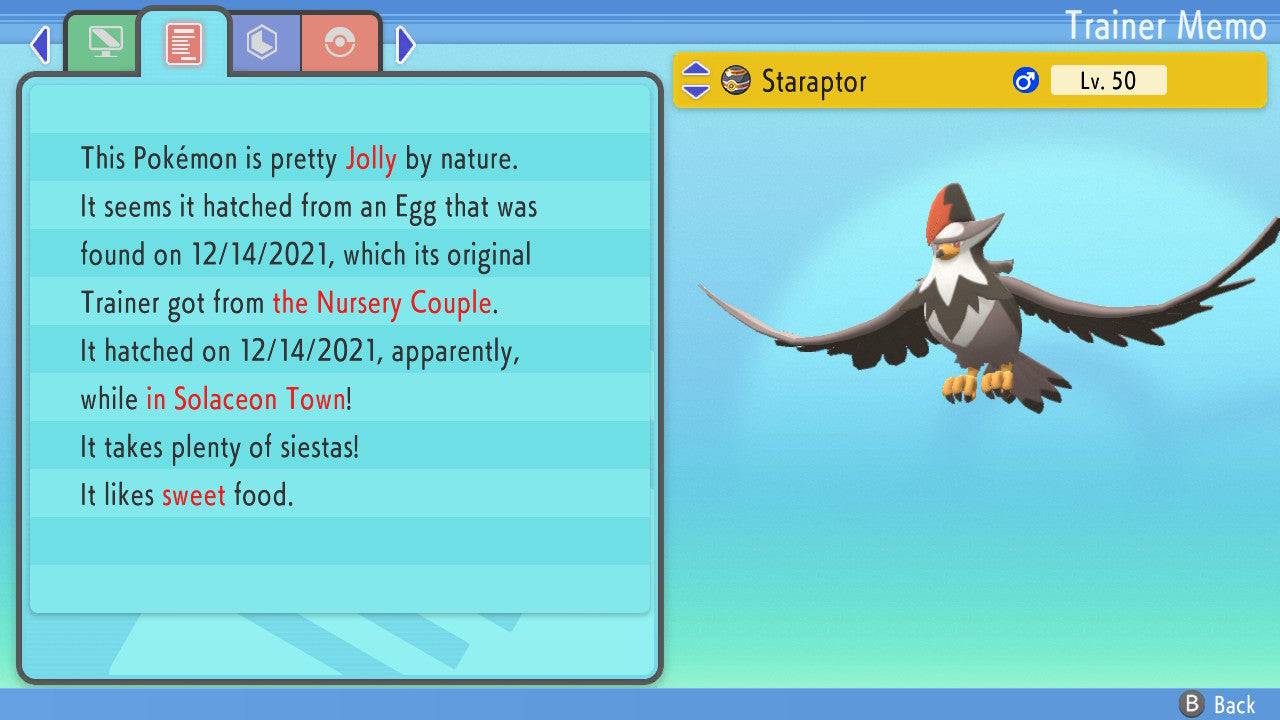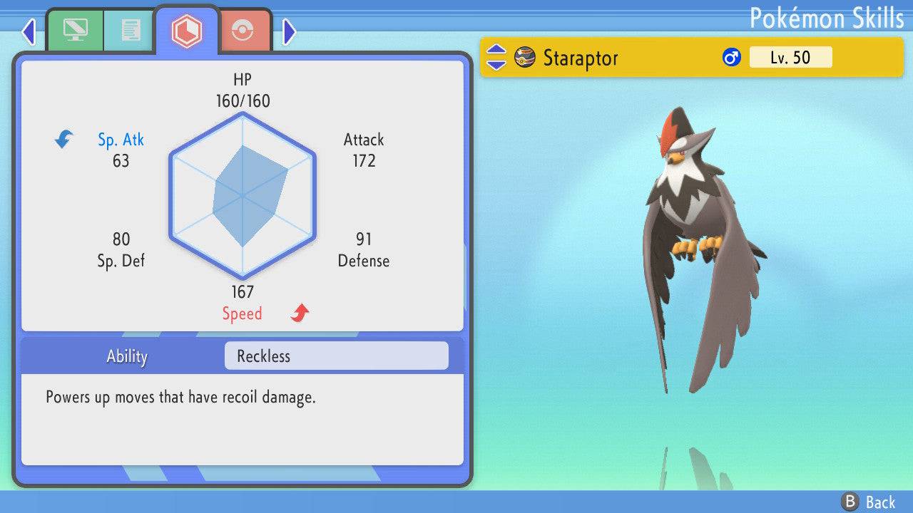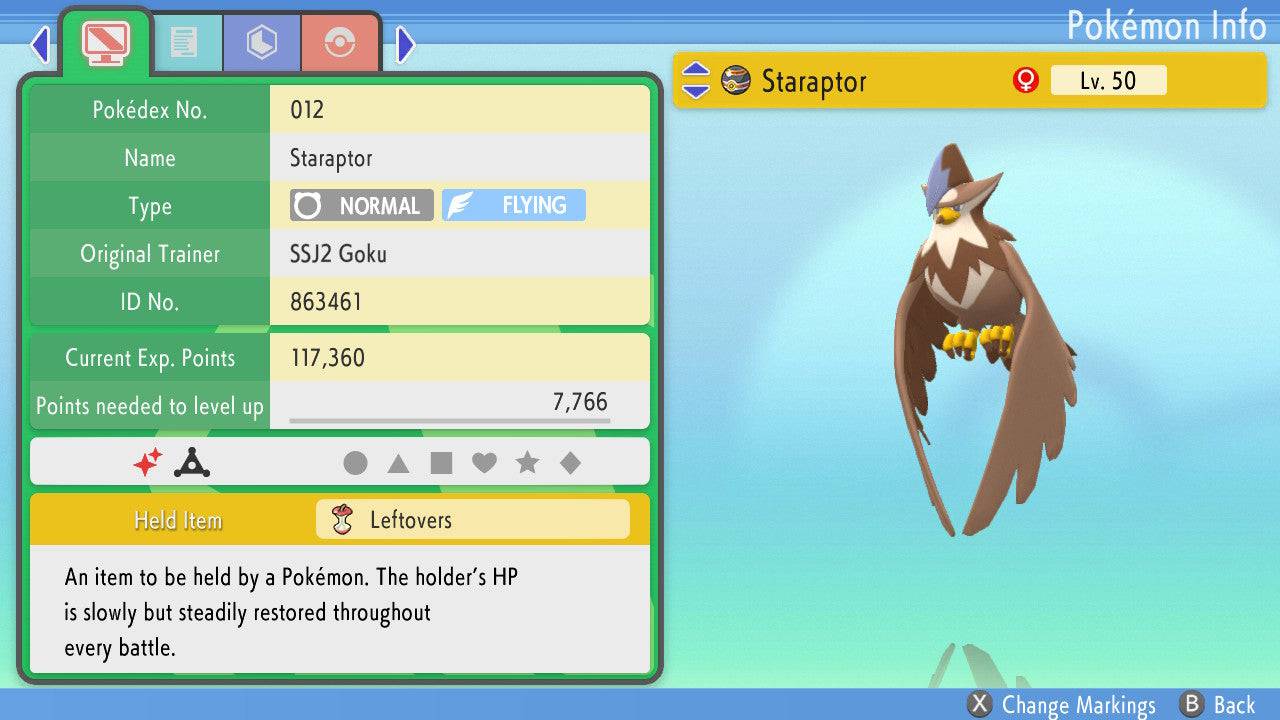 Pokemon Brilliant Diamond and Shining Pearl Staraptor 6IV-EV Trained