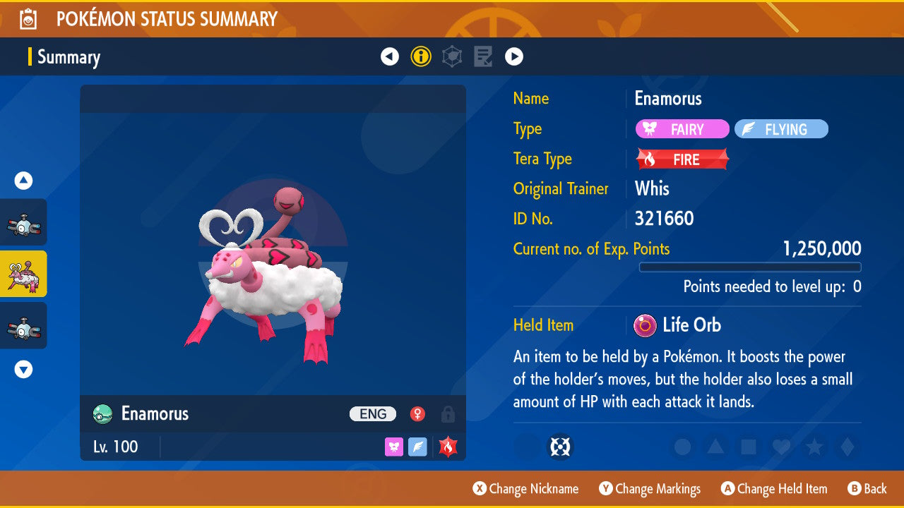 Pokemon Scarlet and Violet Enamorus-Therian 6IV-EV Trained
