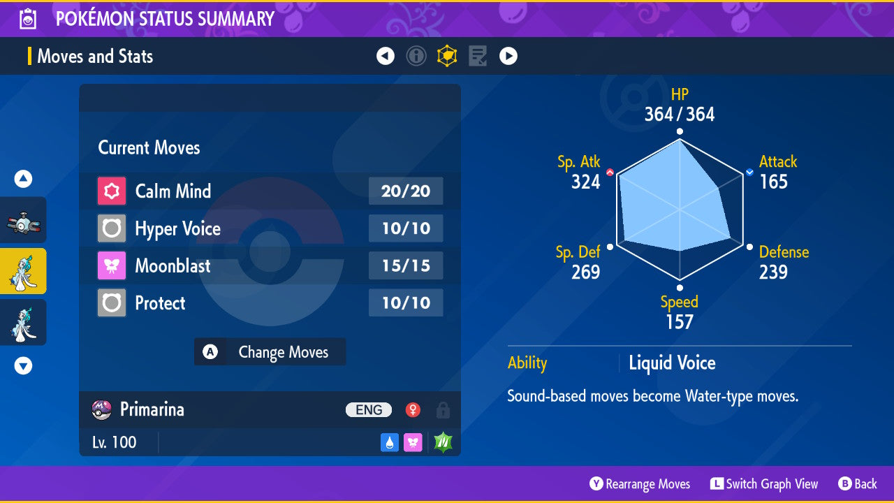 Shiny Primarina @ Leftovers (Rainy Mark) LV. 100