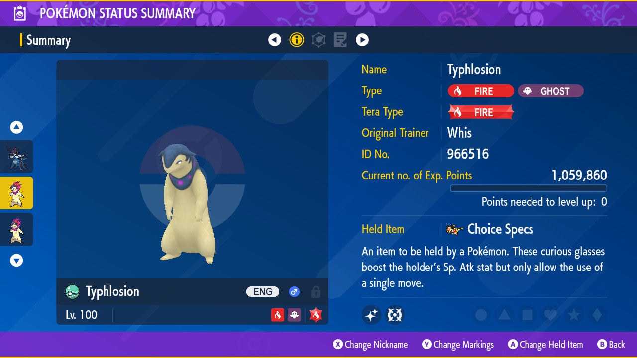 Typhlosion-Hisuian @ Choice Specs (Shiny) LV. 100