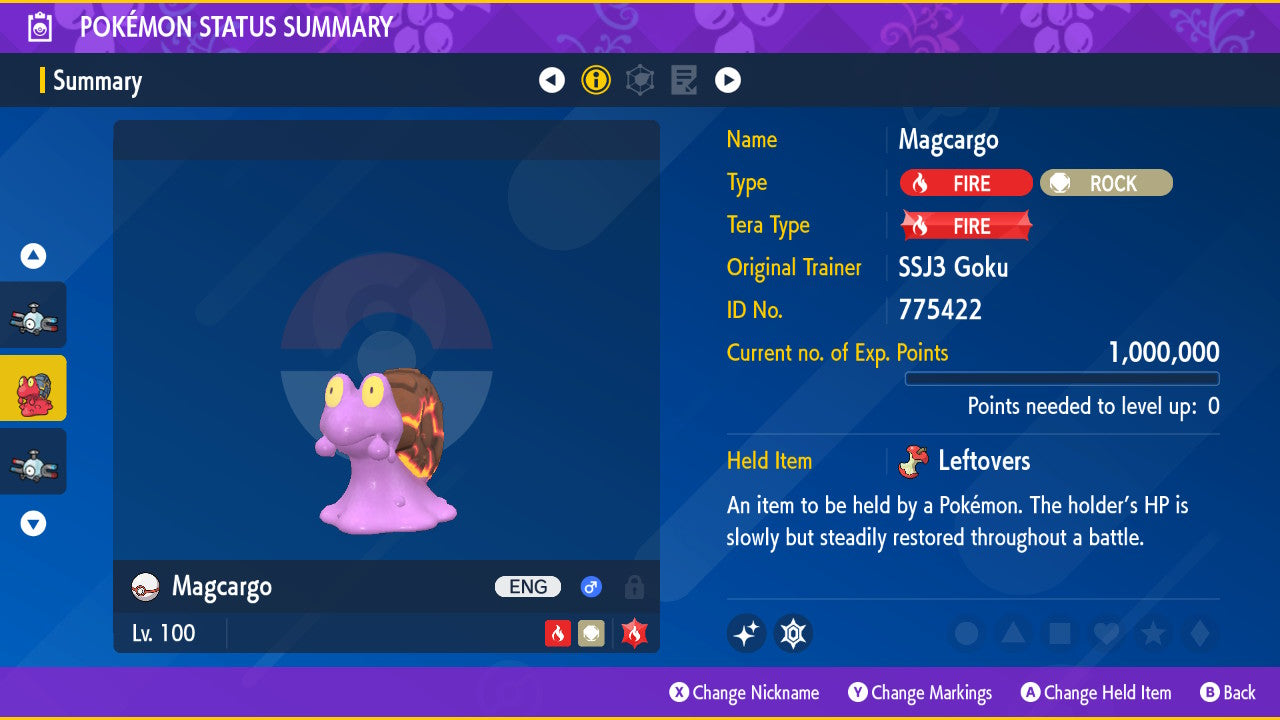 Pokemon Scarlet and Violet Shiny Magcargo 6IV-EV Trained