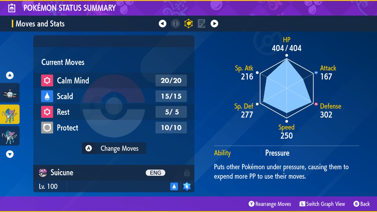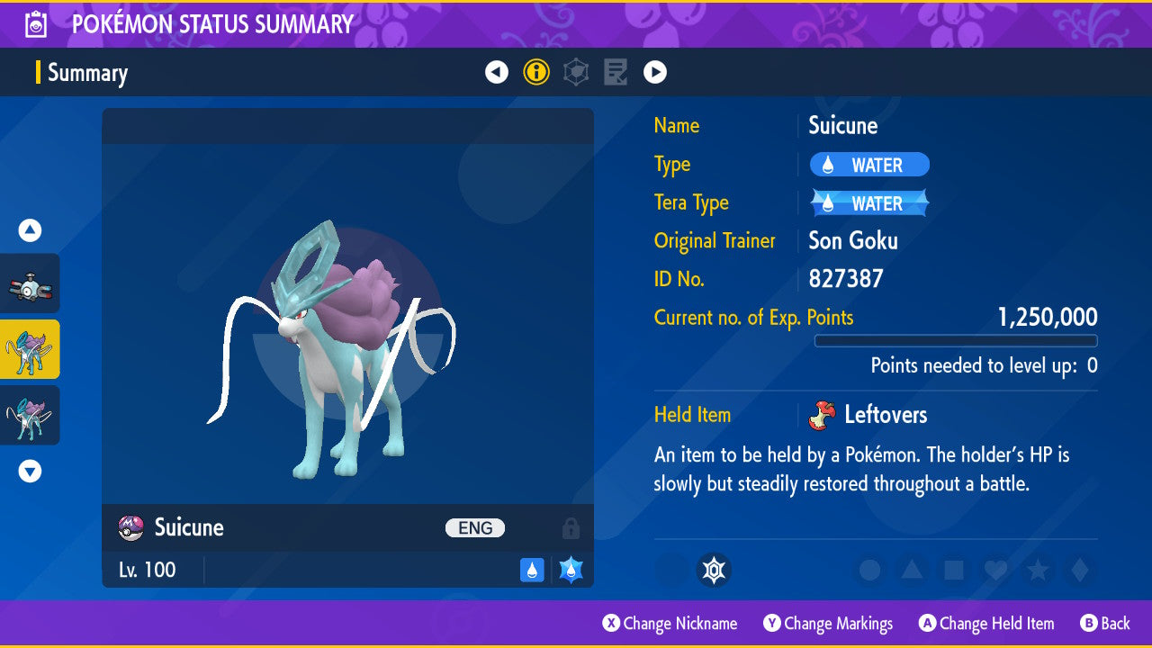 Suicune @ Leftovers (Shiny Locked) LV. 100
